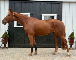Prudence is a 6 year old KWPN mare. She has been professionally trained and shown up to 1.15m in the US. Prudence is brave, brave, brave, scopey, athletic and has a perfect natural lead change. She has a puppy dog personality and will make up to be a nice partner for a young professional or amateur looking to bring a young horse along on their own. Lovely horse around the barn, great for the farrier, clipping, trailer, vet etc.