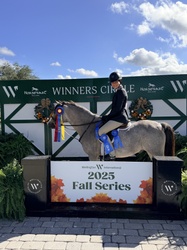 He's a good mover with a beautiful self carriage, a great jumper, easy changes, super comfortable, a push ride and seems to love the little kid job! He is snuggly sweet in the barn, loves to hack out, bareback etc. He's pretty simple and straightforward, just needs more show milage. Price to increase with more mileage. Owners would prefer to lease over selling.
