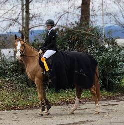 Won young horse classes in Germany. Total easy and clear in his head. Also handled by children. Farrier and transport no problem. Owned since foal, no dealing horse.