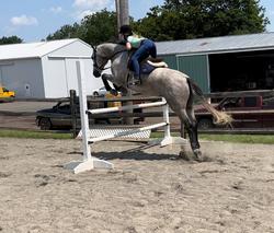 Lovingly known as “Donny” - super sweet, in your pocket type of horse. Extremely brave, zero prep, never needs to see the jumps. Very soft mouth and likes an educated, soft rider - as he is more of an sensitive ride with a strong jump. Imported from Europe doing the 1.20m. Could easily be a small Jr Hunter in the right program. Helped his current rider move up from the short stirrup - 3’ hunters. Would be great for a kid moving off a pony looking for the next step. Likes his once a week pro rides to keep his step open and him moving forward. Really quality horse, who is ready for his next rider.