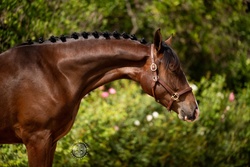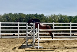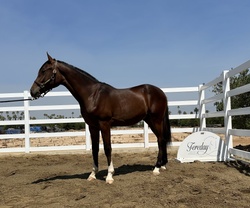 Kylo is a handsome bay 2024 gelding out of Holsteiner stallion Catch (Colman - Carthago) and Vanizia a Viva Voltaire mare. This fancy boy shows promise for the hunter or jumper ring. He currently measures around 15.2 and has lots of growing to do. He gets along with everyone and is easy to have in the barn. He is well behaved and leads, loads, ties, clips, lunges, and stands for the vet/farrier. This future champion is well positioned to be developed in coming years. He is a cute mover and enjoys to jump. Come meet him, he is very impressive in person.