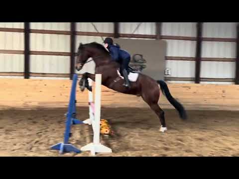“Kenny” has shown through 4th level/FEI 5 Year olds in dressage, but recently found his love for jumping. He is green over fences, but has a clear future as a derby and/or equitation horse. Definitely the type that an experienced junior or amateur could have a blast bringing along with a little professional supervision, as the flatwork and show mileage (albeit in the dressage ring) is already there. Or a professional would have a blast developing.