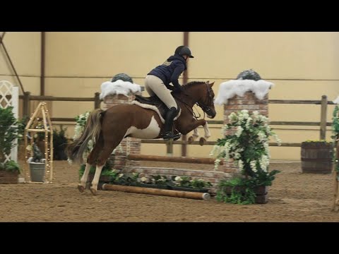At home, Apache schools comfortably around the course and has jumped up to 2’11” (90 cm), making him a fun and capable partner for children moving up in the jumping classes.
