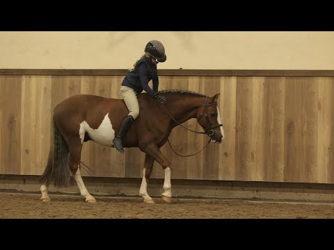 Apache is an 8-year-old small gelding who combines an exceptional temperament with standout chrome. His four high white legs and unique belly spot give him a look that truly turns heads.