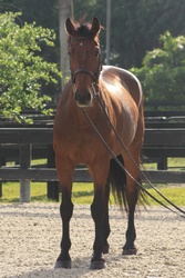 Amsterdam is a competitive and versatile gelding currently showing in the 2’6”–2’9” jumpers. Quiet and adjustable, he is equally suitable for the equitation and hunter rings. He is a comfortable, confidence-building ride with solid flatwork and a kind demeanor. Sound, reliable, and an excellent teacher, Amsterdam is easy to take to shows and is also well-suited for lesson programs.