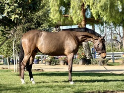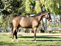 Sir Rio de Janeiro is a 2023 Bay Hanoverian Gelding, who exhibits good movement and a good expressive jumping style. Naturally very balanced, correct, clean legged, with good feet, and a kind and willing temperament. Although a young prospect de Janeiro's kind and willing temperament allows suitability for an Amateur ~ Junior Rider in the near future who resides in a good professional program. Sir Rio de Janeiro is a member of our client sales program; we are representing for a dear friend who bred him.