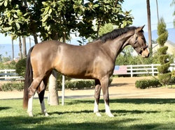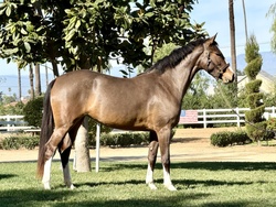 Lady Reality is a 2023 Bay Dutch Warmblood Mare, who exhibits good movement and a good expressive jumping style. Naturally very balanced, clean legged, and a kind and willing temperament. Although a young prospect Lady Reality's kind and willing temperament allows suitability for an Amateur ~ Junior Rider down the road, who resides in a good professional program. Lady Reality is a member of our client sales program; we are representing for a dear friend who bred her.
