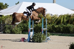 2017 gelding imported from France, Helfik is a talented and scopey horse with experience up to 1m20 and clear potential to continue progressing. He has shown in Europe and at WEF.