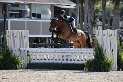 Bagheera is a stunning bay gelding currently showing successfully in the Adult Hunters at WEF with top placings and consistently impressing with his beautiful jumping style, rhythm, and presence in the ring. He is currently schooling 3’6 and is the hack winner. He has exceptional temperament that makes him a true pleasure to work with every day.