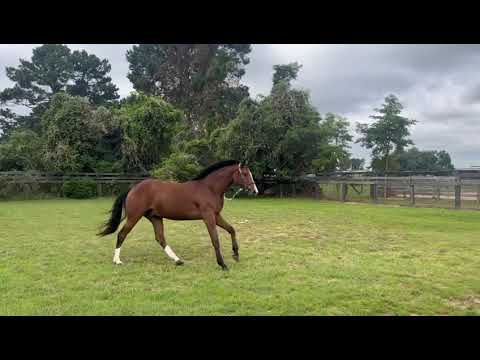 Handsome AND Sweet 4yr Oldenburg Gelding (Bliss MF x Run Lucy Run xx) Loves attention, has plenty of show miles in Hunter Breeding with multiple championships. Just started showing under saddle and was Sallie B Wheeler Central 3yr old Champion 2025. Burt is a stunning prospect currently in training w/t/c and schooling small courses. -- He has both changes, nice slow timing at the canter and is a good mover in all 3 gaits. He is inquisitive and intelligent, picking up new tasks quickly, he loves having a job. Has been handled since birth and is well mannered around the barn. He is middle of the road in the field likes to play but not dominant and is easy to catch -- just a whistle and he comes running up to the gate!! He is a super prospect having plenty of handling, field trips and very solid start. Burt will make a lovely horse for anyone looking to put some quality time in this young athlete! Please reach out with any questions -- Rob Moyar 281-818-2321