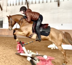Fancy large pony with impeccable breeding (Cusop Jovial x Morton's Glamour Puss) for lease. Professionally started, calm, safe and confident under saddle. Easy whoa, soft mouth, lovely balance, very brave to the jumps, not spooky and no mareish behaviour. She has been brought along conservatively and has the scope and stride for the division. Very little to no prep required and comes out the same every day, on or off property.