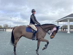 Carolina “Lina” is the perfect move up horse. One of the kindest, most honest mares you’ll ever meet! A record a mile long in the jumpers, she can also go into the eq ring and win! She can tolerate an inexperienced riders mistake and will make you look good doing it. She is easy and straightforward from the barn to the ring. Lina has a high level of education both on the flat and over fences. She has auto changes and a comfortable jump. Lina is the ultimate meter packer! An absolute barn favorite!