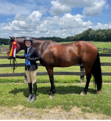 Cash or Czech (Cash) is a 12-year-old, 15.3 h Westphalian gelding by Argeggio, brought along and shown in the 3' hunters by an amateur since importing him in 2017, is as athletic, sweet, and safe as they come! Ideal for any child or adult at any stage of learning. He is a beautiful mover and jumper, and a proven teacher at every level; goes directly from stall to arena at shows and is the same horse EVERY day. Cash is an excellent equitation mount with all the test buttons, an auto change, and is SUPER comfortable; safe and suitable for the hunter, jumper, and equitation rings, and a joy to live with!