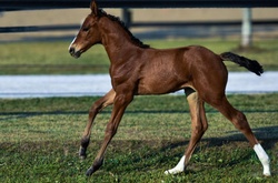 Sired by Cosmeo, a proven competitor up to 1.45m in Europe and a standout in the 3’6”–4’ Hunter ring. Cosmeo stamps his offspring with athleticism, elegance, and a natural jump. His progeny are successfully competing at 1.20m+ in the Jumper ring and in the top Hunter divisions across North America.