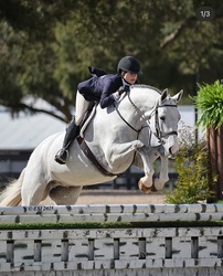 Proven 3’3”/3’6” junior hunter who is qualified in the 3’3 and 3’6 for 2026 junior hunter finals. Jumps a 10 with a happy expression every time! Loves to show and wants to win. Would also make good move up horse for a kid or adult to take them up the ranks. Very honest and a straight forward ride. Big stride with a set it and forget it canter so would make a nice derby or equitation horse. Videos available on request!