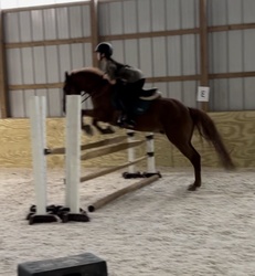 Crunch is a super sweet, in your pocket kind of guy, who always aims to please! He is a true kick ride with a lot more whoa than go. He has schooled up to 2’9”, but currently jumping 2’-2’6” consistently. While he may not be the fanciest mover out there, he will get into a rhythm and pop around a course with a nice consistent tempo. Crunch is ready to grow with his next kid whether it be playing in some low level equation or teaching them the ropes in cross rails and short stirrup. Or if you just want a pony to hop on a few times a week with no stress, he’s game for that too! Crunch is an all around kind of guy and would love to be scooped up by Santa and placed under some lucky kids tree this year!! 🎄🎅🏼