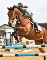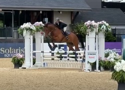 "Patric" showed up and down the West Coast from Sonoma to Thunderbird this year, ending the season with great rounds in the meters and meter tens; he shows good scope with an easy-to-stay-with jump. He needs no real prep at shows- settles in quickly and knows how to do his job in the ring. He's been jumped up to 1.20m at home and it's easy for him!
