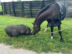 Beni is a stick and spur kick ride. He is a lazy boy who requires a kiddo who knows how to use their leg and do flatwork to get him moving forward. He is safe and sensible enough for littles in a program, but an ideal pony for a kid wanting to learn real flatwork and progress from the childrens to the division. He is never naughty and can happily take days off and return like normal. However, he enjoys being "hunter pony plump" and likes to lean into the dad bod lifestyle. Due to this, he would do best in a program that can keep him in shape.