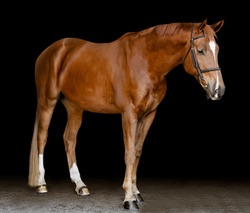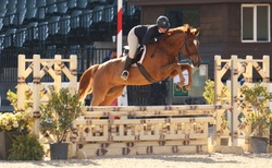 He prefers a soft seat and hand, and has a lead changes both ways. No vices. He happily takes a joke. He does need a consistent program/riding, if he isn't consistently worked he may root a little before the jump, otherwise he is great and a barn favorite! UTD on everything. Minimal prep at shows—pretty much stall to ring. First day we have thrown him on a lunge line just to get a little energy out and stretch his legs. No paste or ear plugs. He is a VERY EASY keeper- outside 24/7, mixed herd (but he is dominant).