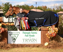 Dudley does have a minimal USEF record at this time, as owner didn’t have a desire to show especially on the rated circuit. However, he has shown at local schooling and C shows and was champion/reserve at most! Most recently, Dudley went to Tryon International and was champion in the 3’ hunters, 2nd in the pro derby (with scores in the 80’s), AND stepping into the stadium for his first national derby under the lights and he didn’t even bat an eye!