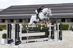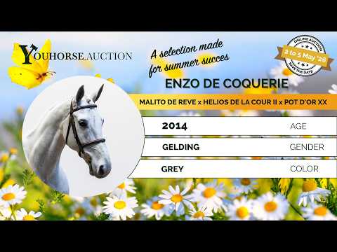 Horse with experience at 1.55m level. Compact built and kind with a good attitude and a willing character. Basically well rideable and very easy in the flatwork, with a nice canter, good balance and easy changes. Not spooky and shows plenty of scope and carefulness over the jump, improving as he jumps more. In the course he can pull quite strongly towards the jump, which requires attention. Therefore suitable for a more experienced and ambitious amateur who can manage this well.