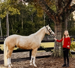 “Nimbus” is a 6 year old palomino medium North American Sport pony gelding. Has the step and scope for the division and always gets a piece of the hack. Sails over 2’6” easily and is always brave to the jumps. Still eligible green with many miles at shows all over FL. He is a born hunter with the softest canter, excellent extension, and a natural lead change. He’s good for clipping, farrier, bathing, trailering, mounting, etc. Loves all other animals and people and will always meet you at the gate. So flashy that he’s impossible to miss! Text Heather at 386-214-0194