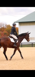 If you’re looking for the ultimate school master packer for your junior amateur jumper, this is the mare. She is the true definition of point-and-shoot, light in the mouth, auto change, flats like a hunter. Can take any amateur from the .70s to the 1.10m. Her record speaks for itself, placing at top venues all over the East Coast. A true stall to ring type horse, not spooky novices with a great personality. No vices whatsoever