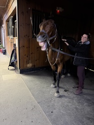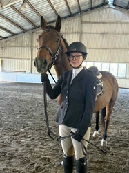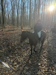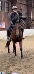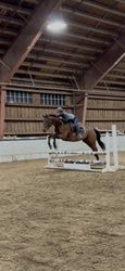 Felix is a QH type gelding looking for his person to spoil him. Very uncomplicated, safe, kick and spur ride. Same horse with time off and on and off the property. Trail rides with company or alone. Low level dressage job in the past and has recently been exposed to the hunter world and absolutely loves to jump. Appropriate for the 2β6β and under job, has lead changes, and can get the horse strides (but can also do the adds). Would be a fantastic fit for an adult long stirrup to 2β6βer or a child coming off a pony. Asking low to mid fives.