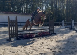 Falcon is currently jumping up to 2'6" courses and is started on his lead changes. He has jumped all new jumps without batting an eye and has been introduced to fillers.