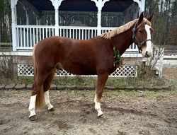 "Falcon" has all the chrome and all the brains. He is an exceptional prospect that has endless scope and talent to be a competitive horse for any ring. He is extremely brave and always takes each ride with a positive attitude. This horse would be perfect for an ambitious Junior or Amateur who wants a fun prospect to grow with in a program.