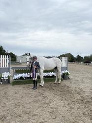 Grey Flannel is a 2015 imported Zangersheide gelding by Grand Slam VDL. Has competed up to 1.20m overseas as a young horse and has successfully shown here in the Adults Hunter division as well as the low jumpers with an amateur. Would be best suited for jumpers or equitation 1.10-1.20m. Can take a joke, has an auto change, and is straightforward. Uncomplicated to handle, no vices.