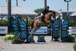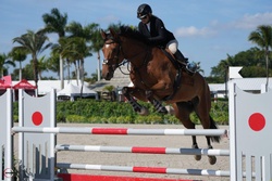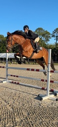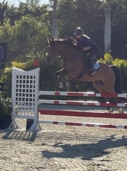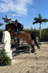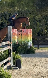 Looking for your next partner for this upcoming show season? Maximo is a 2017 Imported KWPN 17 hand bay gelding with some chrome. Maximo is by Olympic stallion Grandorado TN NOP. His bloodlines on both his sire and dam’s sides are filled with 1.60m jumpers. Maximo has an FEI record in Europe up to 1.30m. He was imported from the Netherlands in December 2024. His character is unmatched, very kind and easy to handle. Auto lead changes. Extremely comfortable to ride and jump. Can take an amateur or junior up the levels. Recently showed at WEF in the 1.25m successfully with lots of room to go higher. With his movement, Maximo can also be competitive in dressage. He is super flexible with very easy lead changes and lateral work. This horse is so talented and special.
