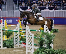 Imported from Belgium in 2020, this talented gelding has been successfully competing up to 1m45, including an FEI 2*week in Bromont and Highs/U25 classes. He has mostly shown in 1m40 and regional Grand Prix classes with multiple wins/podium finishes under his belt. As his rider is starting residency and has less time, he has recently been taking on a “babysitter” role and even finished as Reserve champion of the 1m15 division with a win in the classic after their 5th ride together.