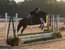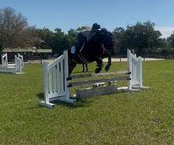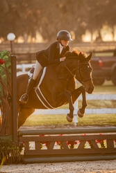 We have started her slowly and correctly and she has achieved whatever level we set with ease. She is suitable for an amateur or junior rider to bring along in a program. Currently, she is showing at 2’ and is easily ready to move up in height. Off the property, she has been an absolute dream to work with. She seems to love being a show horse and is ready to work with her new rider and get to the next level.