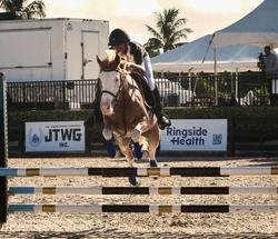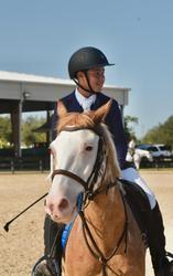 This pony is the complete package: brave, careful, and fun to ride. Forward but adjustable, with a soft mouth and naturally balanced rhythm that gives riders confidence in and out of the ring.