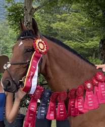 Extensive show record with a variety of riders. Had top placings at Vermont Summer Festival this year, he was reserve champion in Limit Eq 3’ with 14yo and qualified for NEEC with older junior as well competing in the 3’6 eq. Also took part in the 2025 USHJA EAP program.