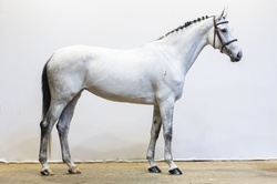 Grey mare with experience up to 1.45m level. Attractive horse with plenty of scope, a good canter and takes the rider well to the jump. Makes a positive first impression with his presence and appearance.