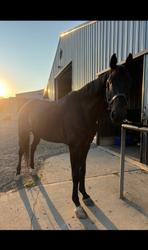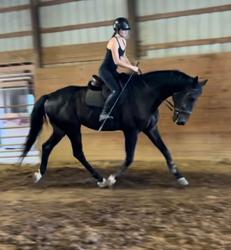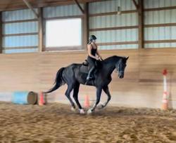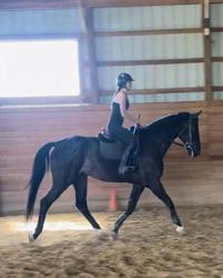 "Max" is the kind everyone notices — tall, fancy, and with the sweet personality. Imported from the Netherlands as a 4-year-old, he was started in dressage and trained through First Level. His flatwork is a dream: easy to collect, adjustable, with a floaty trot, smooth canter, and a naturally big stride.
