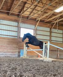 making the change into hunters/eq/jumpers, Maddox has only been over some fences (2’–2’6” under saddle) for a few weeks but is nothing but brave and willing. and has free-jumped to 1.0m with scope for more. But he needs someone to bring him along!