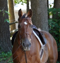 Oakley is a gorgeous WB former show horse who has done it all: hunters, jumpers and equitation! He is currently rehabbing from an injury but should be suitable for flatwork and companion. Looking for someone to either finish his rehab or just groom and love him on the ground. Very sweet personality, easy to handle, push ride when under tack. Available for foster or adoption through Lucky Horse Equine Rescue.