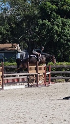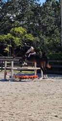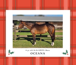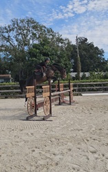 Oceana is a beautiful mare of exceptional quality. She was started late in November of 2024 after producing a fantastic filly by Glamourdale. While her bloodlines suggest a more direct route to a dressage career, she is a hunter, through and through. To say she loves jumping is an understatement. Easy down the lines, a modest leg ride, and very adult ammy/junior friendly. Oceana has a lovely change that is already developing auto. She has shown up to 2'6 and we are preparing her for the greens this summer/fall. Scope for 1.40! Please text 8286741128 for more information.