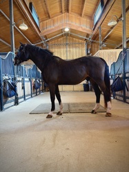 At home he is uncomplicated and a pleasure to have in the barn. TRULY a puppy dog. No quirks, no drama, easy to handle, easy to ship, and easy to settle into new environments. He had colic surgery more than a year ago with no resection, and has been healthy and working consistently ever since.