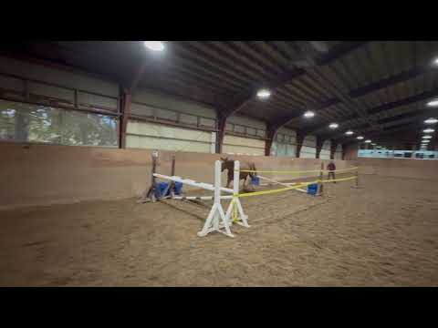 On Y Va (aka Eva) is by the Selle Francais stallion On Ira (Voltaire/Joyau D 'Or A/Turner) that stands at Pikturesque Farm in Ontario, Canada, out of a TB dam by the famous TB Crown Attorney. She has 3 very good correct basic gaits and is expected to finish growing at 16.3. She is drawn to the jumps when loose in the arena proving her genetics and future ability as a show hunter. Eva is growing into a lovely prospect and is ready to be started under saddle. Updated videos as she develops.