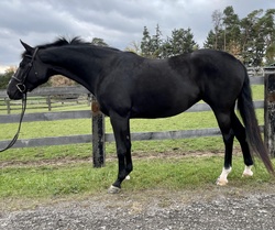 Pebbles: Stunning 9 y/o mare by Hanoverian stallion Harbour Side (Harvard x De Niro) out of CSH mare by DWB stallion President II (Kennedy). Lovely type with a great ground covering canter. Brave and straight forward she is currently schooling 2’.6” – 2’.9’ with her leads and scope to go higher. Easy keeper and good for the vet, farrier, and loading. Been on the back burner due to lack of time, but she’s ready to start her show career. Eligible Baby Greens.
