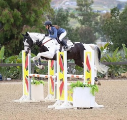 "Cake” is a 16.1h, 13 yo Dutch Warmblood Cross gelding. Very suitable for an amateur 2'6-1.10m. Has shown in Eventing, jumpers and hunters. He is easy to ride, has auto changes (with spur), turns easily, there on landing and very adjustable. Just point and shoot! Suggest staying in a training program and not in your backyard. Lazy by nature but not a kick ride.