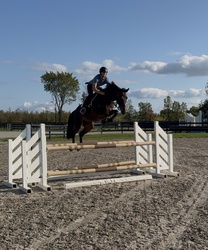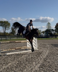 Pireusa is a quality 5yo mare with modern looks and natural talent to be a top level jumper. Imported from VDL unbroke as a 4yo. She was slowly started in Feb 2024. Started seriously jumping in April 2025. Started showing in May 2025 in the 0.75m. She’s been moving up the levels quickly as she’s super smart and very careful. She showed 2 weeks in August 2025 doing the 1.20m 5yo class at Kentucky Horse Park and recently competed in the 5yo finals at Traverse City.