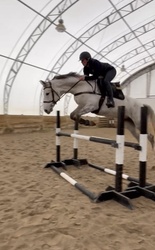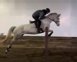 Show experience at .9 jumping and first level dressage. Ridden by AA and Jrs but rider needs to be able to take a joke. Two foals, easy to get in foal. Currently training second level dressage w confirmed changes and 1.20m jumping. Wonderful floaty mover, lots of scope. This mare wants to please and has a great work ethic. She is confident over a fence, has some quirks to be discussed with a serious buyer.