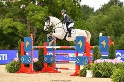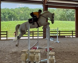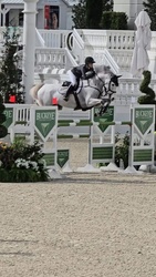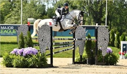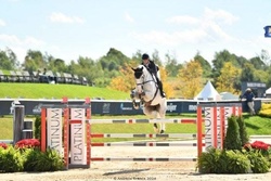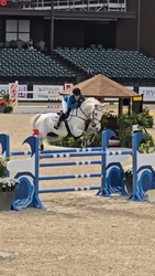 1.30/1.35 7yo Young Jumper Championship- R1 Qualifier Blue Ribbon, R2 Qualifier no rails advancing to the final. Finished 12th out of 30 (Traverse City 2024)