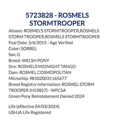 Rosmels Stormtrooper is the very best teacher! In one year, Stormy has taken his tiny rider from x-rails to winning in the Children's Pony. SAFE, NO PREP, HONEST and a BIG STEP! 13 7/8 hh. L, P or L-P Low/mid 5s to L.