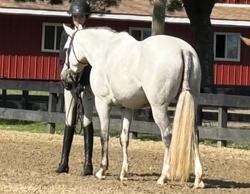 Affectionately known as “June Bug” is a safe, sweet, in your pocket type kids pony. She is unflappable. Ride her bareback in the field and over jumps, through the woods, over wooden bridges, on the beach in the water and even on the road she is safe.